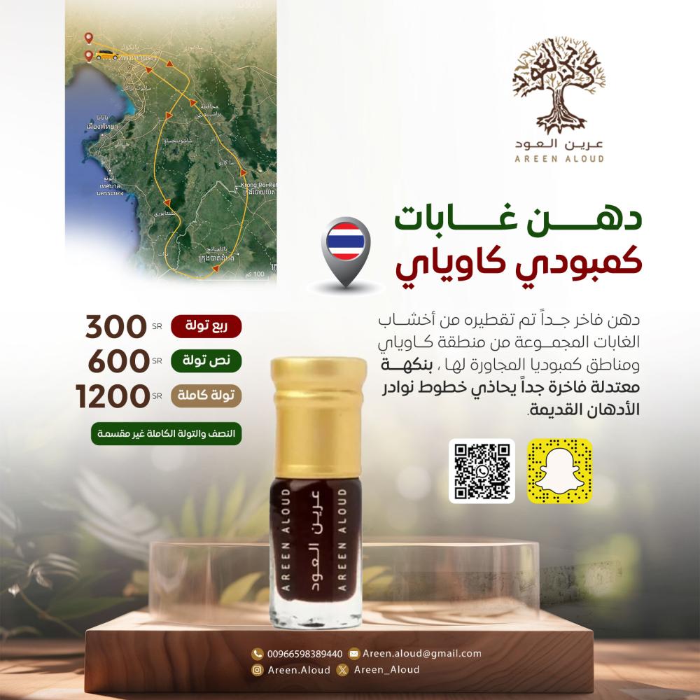 دهن فاخر جداً تم تقطيره من أخشاب الغابات المجموعة من منطقة كاوياي ومناطق كمبوديا المجاورة لها , يحاذي خطوط نوادر الأدهان القديمة